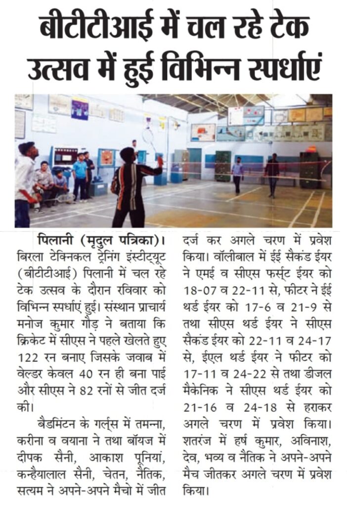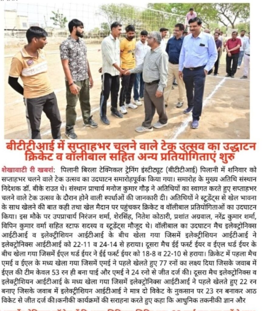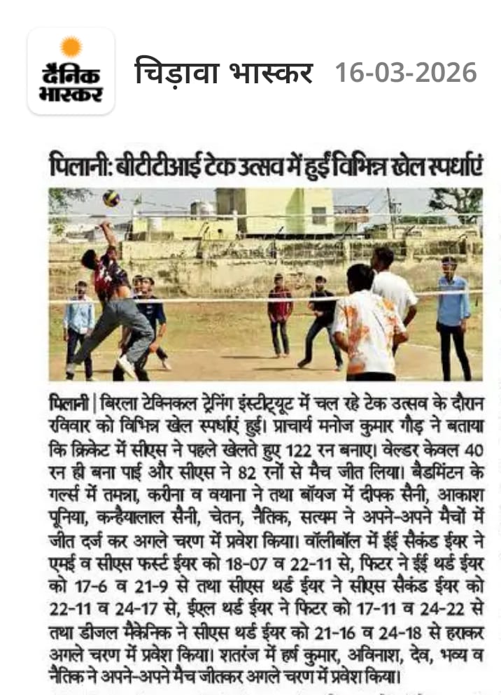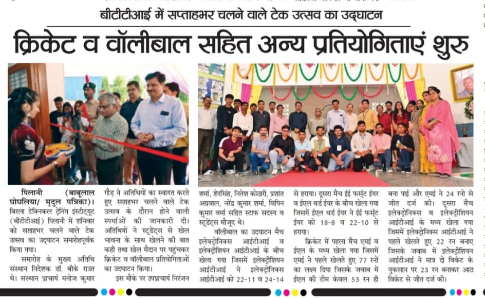 13 मार्च से 18 मार्च 2026 तक एक सप्ताह का वार्षिक उत्सव “टेक-उत्सव 2026” आयोजित किया जा रहा है। इस अवसर पर विभिन्न खेल, तकनीकी एवं सांस्कृतिक कार्यक्रमों जैसे क्रिकेट, वॉलीबॉल, शतरंज, बैडमिंटन, तकनीकी प्रश्नोत्तरी, वाद-विवाद, गीत एवं नृत्य प्रतियोगिताओं का आयोजन किया जा रहा है।